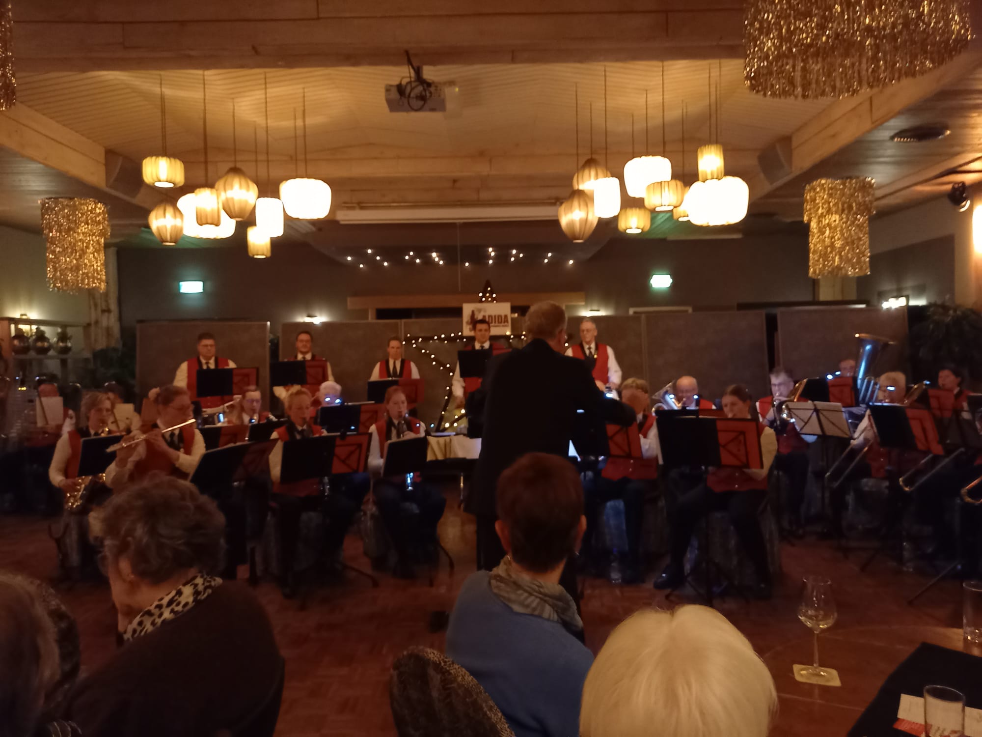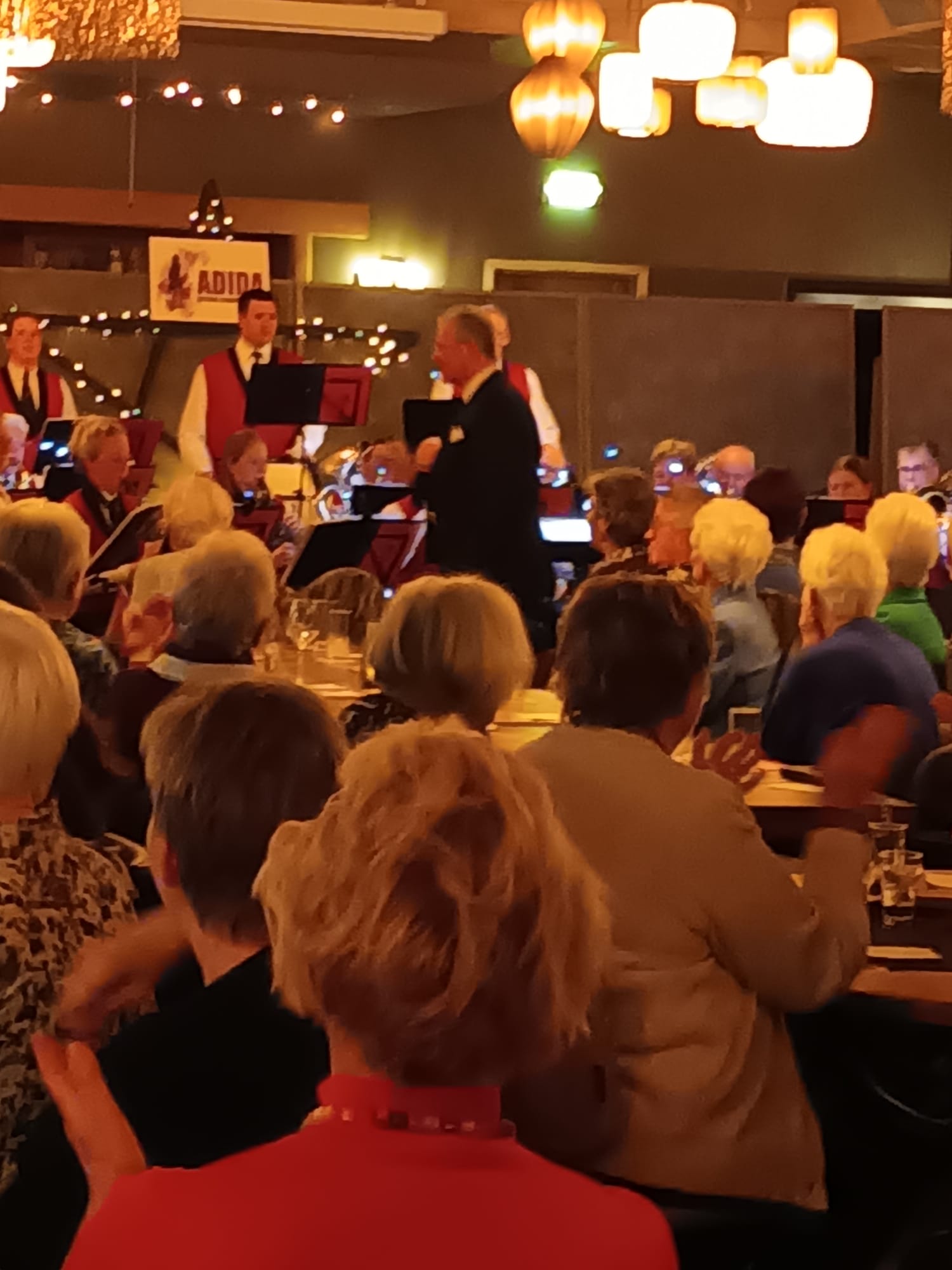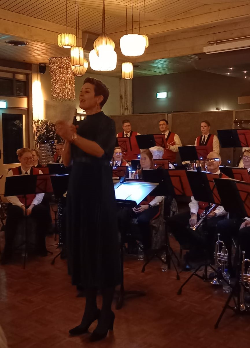 “aansluitend trad drumfanfare St. Martinus op onder begeleiding van dirigent Simon Kleinjan en lady speaker Antoinet looman verzorgde tussendoor leuke anekdotes.”