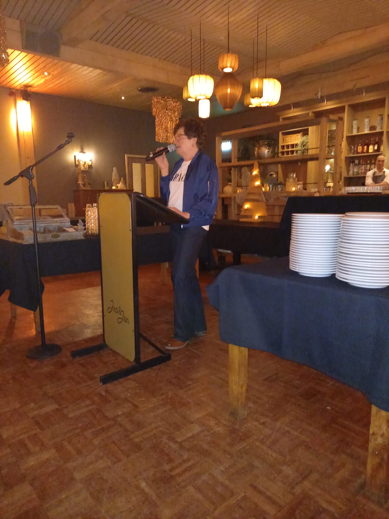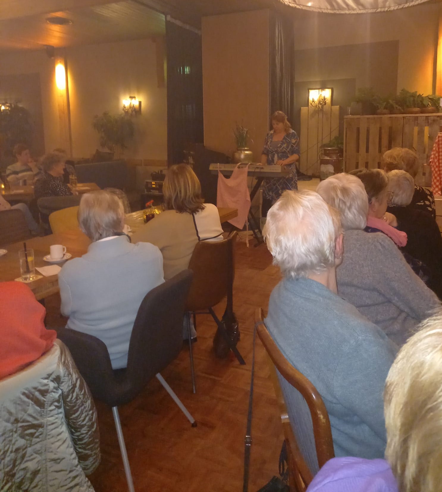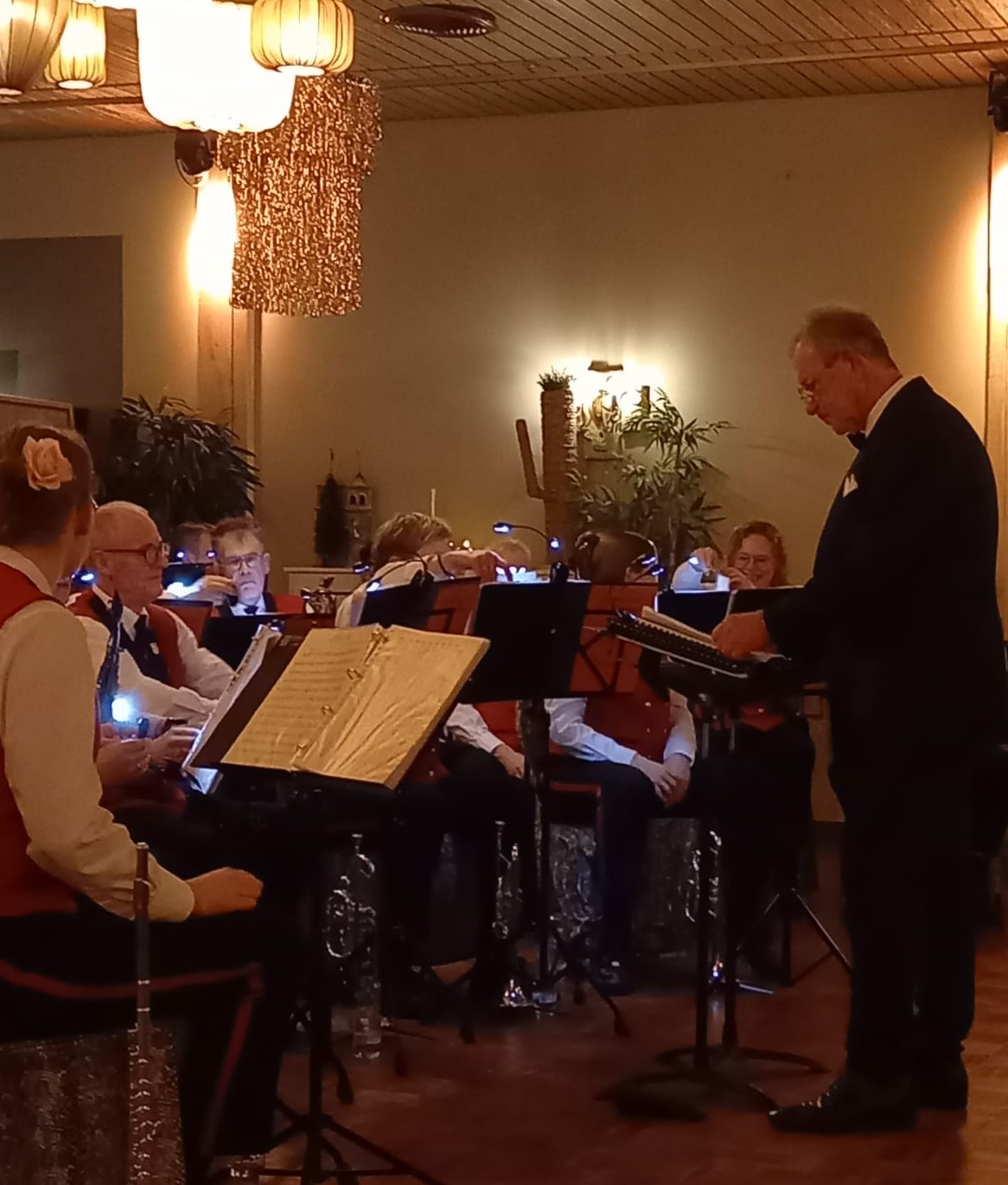 “aansluitend trad drumfanfare St. Martinus op onder begeleiding van dirigent Simon Kleinjan en lady speaker Antoinet looman verzorgde tussendoor leuke anekdotes.”