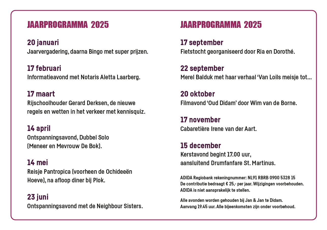 Jaarprogramma 2025 Dinsdag 4 november 2025, extra ingelaste avond, bloemschikken verzorgd door Astrid Willekes